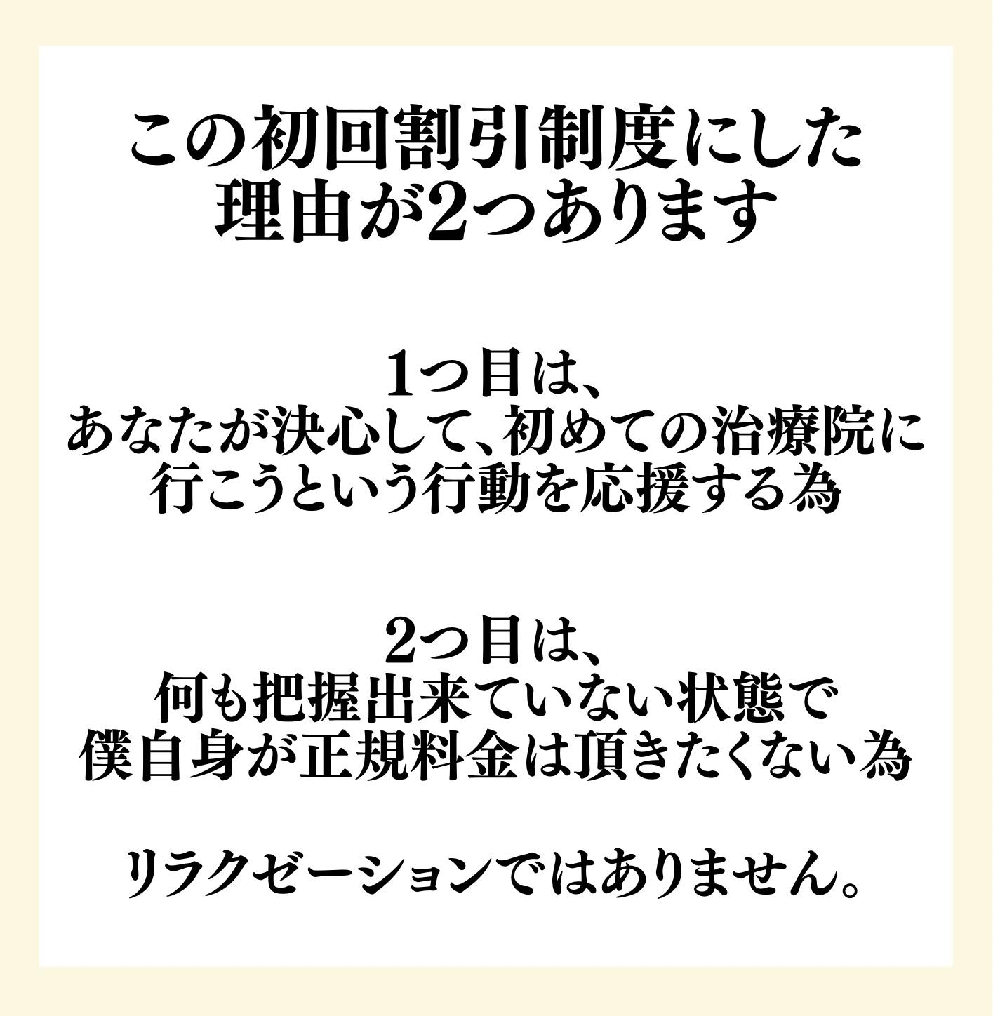 当院は、お客様からご提供いただいた個人情報を、お客様の同意がある場合、または法令等に基づき必要と判断された場合を除外し、当院のサービスもしくは商品等を提供する際に業務上の関係のない第三者に開示または提供しません。